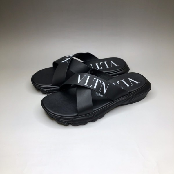 VALENTINO GARAVANI 고무 VLTN 슬라이드 슬리퍼 엠보싱 프린트 로고 장식 스트랩 슬리퍼
