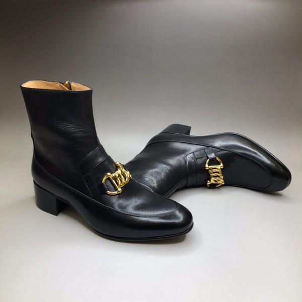 GUCCI 구찌 가죽 홀스빗 체인 부츠 웹(Web) 디테일 장식 프레피 스타일의 부츠 592519 D3V00 1000