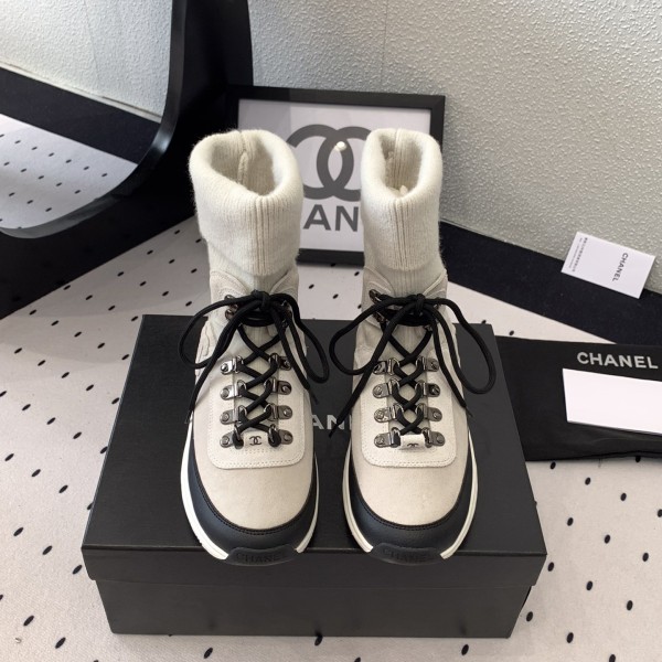 CHANEL 샤넬 CC로고 니트 스웨이드 여성용 스니커즈